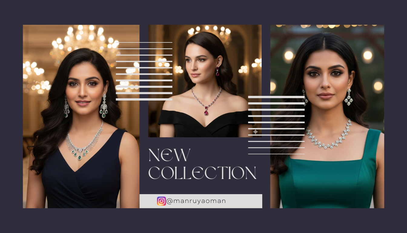"Geometric Glam" White Cubic Zirconia Necklace Set - Silver Plated | طقم عقد زركون هندسي وفضي